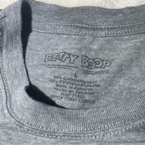 Soft gray t-shirt with Betty Boop and red heart and crossbone accents. Perfect for casual wear. 1930s inspiration.