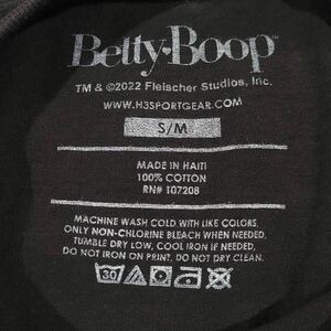 ●Oversized official licensed Betty Boop graphic tee with crew neckline, dropped short sleeves, and rose print design