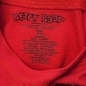 Betty Boop long sleeve top in bold red, Junior size Small. Features classic Betty Boop graphics with a soft cotton-poly blend (5.0oz)—perfect for layering or adding a pop of retro flair to any outfit.