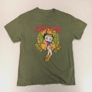 Betty Boop Rodeo Girl Casual Short Sleeve Shirt Womens Size Medium M Green