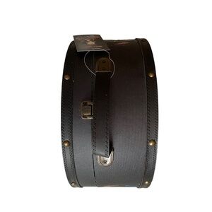- Material: Polyresin with faux leather or vinyl exterior over a composite wood base