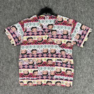 Betty Boop Scrubs Top Womens Large Short-Sleeve Pockets Cotton Blend