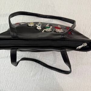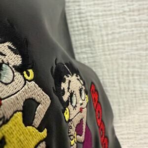 Betty Boop Shoulder Bag Tote Black Embroidered Double Handle Zip Closure