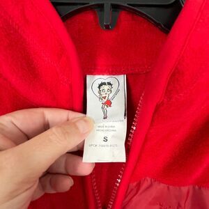 Betty Boop Sweatshirt Womens Small Red Fleece Vintage Y2K Pullover Pocket Zip
