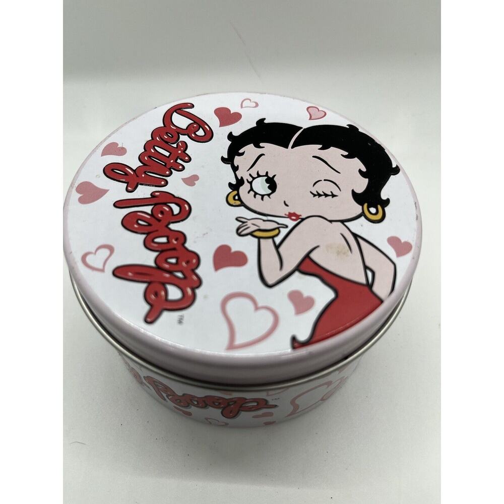 This Betty Boop tin container is a rare find for any collector or fan of the classic animated character. The colorful design features Betty Boop herself and is sure to brighten up any room. Made in 1999, this tin container is a unique piece of Betty Boop merchandise that is perfect for display or storage. The container is made of sturdy tin material and is adorned with the iconic Betty Boop character. This item is a must-have for any fan of the Betty Boop franchise and is a great addition to any collection.