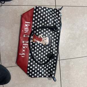 Betty Boop Travel Bag Makeup Bag Small Pouch Zipper Bag Sequins NEW in box Brand new condition in clear display box. Lkette B zipper tab great little bag or wallet clutch flat purse mini bag or small travel size bag for cosmetics or anything small sequin bag Betty Boop side looks like painted leather and has slight satin sheen to it, cute gift idea. Faux Vegan Leather man made and sequins.