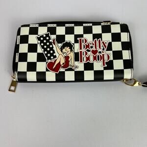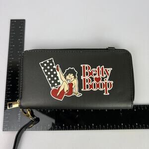 Betty Boop Wallet Faux Leather Black Zip Around Accordion Organizer Wristlet