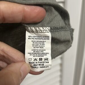 Tag is XL with a boxier fit- but I think it’s more like a large. This is not an overly sized t but not fitted either.