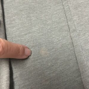 Slight discoloration on lower back of tee as seen in pic. No pilling or other defects.