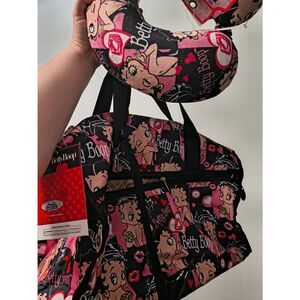 Betty Boop and you travel set including travel pillow and matching duffel bag and extra strap