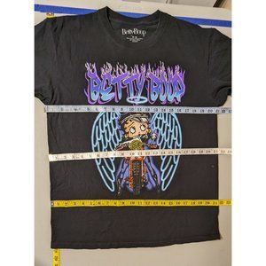 Betty Boop with Angel Wings Biker Chic Black Print front and back Tshirt Tee M