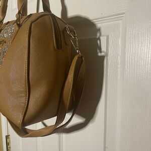 Betty Boop Tan Satchel with Quilted stones Detail and Gold tone Hardwares . Top zipper snap the inside lining has a side zipper two side pockets. Pre owned in good used condition see all pictures any questions please message.