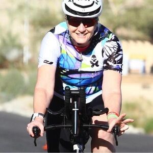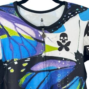 Pretty purple with butterflies cycling jersey by Betty Designs. Worn one for a race. Full zip.