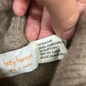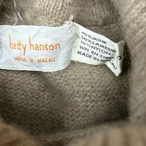 Betty HANSON Elegant Beige Turtleneck Sweater 40% mink 50% lambswool 10% nylon