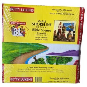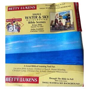Betty Lukens Through The Bible in Felt Bible Scenes Series. Sale is for one Small Shoreline Overlay and one Small Water & Sky background. Covers 16x24 board. Sealed and never used. The Water & Sky background packaging is damaged at the bottom, the clear film is missing across one section and cardboard has a mark on it, side is open at the bottom. Top packaging has a crease in the cardboard. See photos. Does not affect product. Great and hard to find items for your Through the Bible in Felt teaching series.