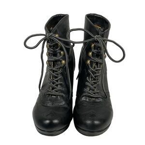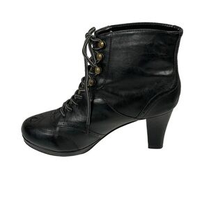 Betty Page Shoes By Ellie Black Lace Up Vintage Look Granny Heel Ankle Boot Sz 9