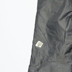 A pair of gray ski pants in excellent condition. The beltline looks dirty in the pic but it's not, it's actually camo-style. The pants have several pockets and 1 specifically for ID or ski pass. Buttons and zippers work well and look brand new. If you look closely, there is some wear on the knees, but no where else. Great pair of pants, at a great price, for a growing girl.