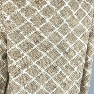 Betty Rose Vintage coat in a tan white brown diamond print. Button front, lined and two pockets. Fabric tag is in the pocket. There are belt loops, but no belt. Please see pictures for more details and measurements.