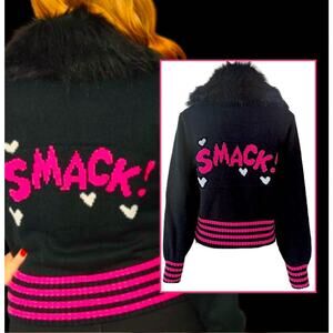 Betty & Veronica x Unique Vintage Black & Pink Smack Sweater Cardigan Size M
