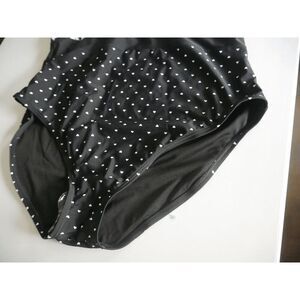 This playful one piece swimsuit is the perfect collaboration between Betty Boop and nautical style! It features an all over print of Betty's face on top, white pin dots against a black backdrop on the bottoms, and a red self-tie bow accent. Plus it's designed with molded padding and underwire for flattering fit.