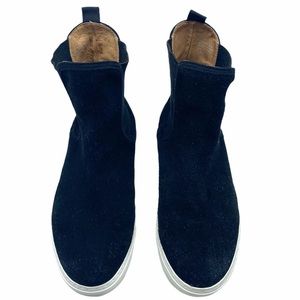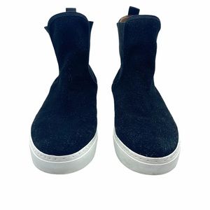 Genuine suede upper, manmade 1" sole. Cushioned insole.