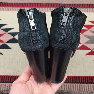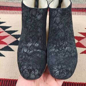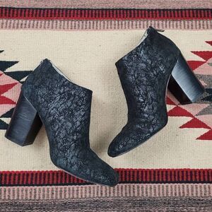 Bettye Muller Metallic Black Suede Heeled Ankle Bootie Sz 6 Textured Zip Back