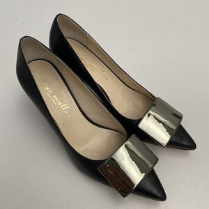 Bettye Muller Pump Black Leather Point Toe Slim 2.5" Heel Green Plate 6.5