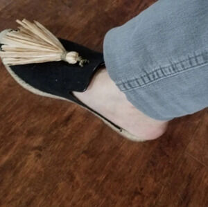 Deliciously cute and comfy. True to size aludes with raffia trim and whip stitching. In original box. Sticker resudue..photo 6 on soles but NEW. I bundle shoes up to but not over 5 lbs.. posh limit. Reasonable offers.