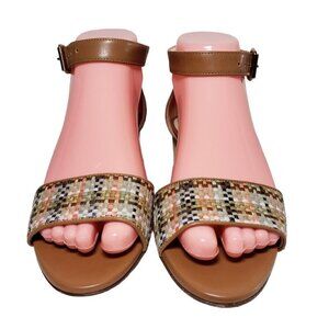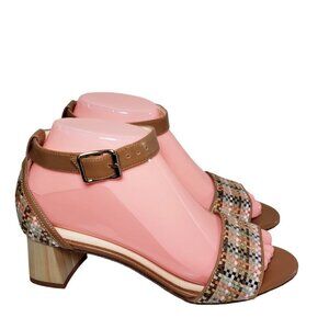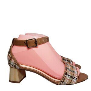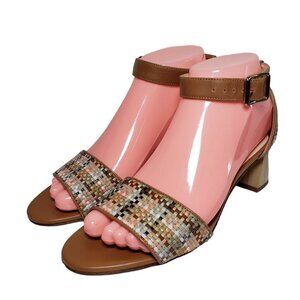 Bettye Muller Women Brown Woven Leather Ankle Strap Heels Sandals Sz 36.5 US 6.5