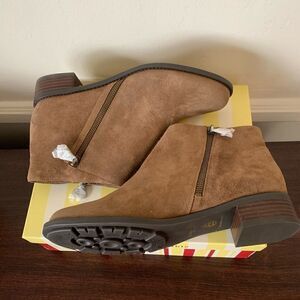 Chunky heel double fashion hard zipper max support arch support natural leather lining suede upper flexible sole round toe ankle bootie Chunky heel