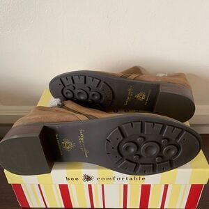 Double zip ankle booties with a thick dura heel, arch support, natural suede leather lining on the upper and flexible sole with a round toe