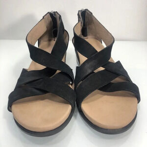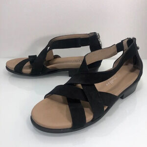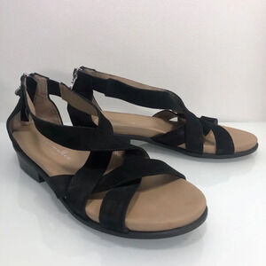 Bettye Muller Black Leather Banyan Strappy Sandal Zipper Back