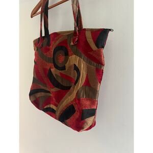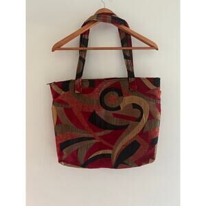 Bettz Designs Hand Bag Made in USA Tapestry Abstract Red Gold Black 18" x 15" JL