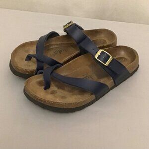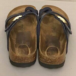 Betula Size 5 Birkenstock Women’s Footbed Cork Sandals, Flip Flops, Navy Blue, Made In Portugal. Preowned. Some wear from normal use, mainly on the footbeds.
