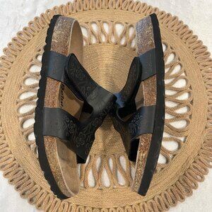 Betula Birkenstock Floral Etched Detail Black Slide Velcro Sandals Size 42