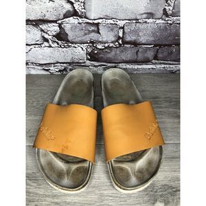 Betula Birkenstock Orange Leather Cork Strap Slide Sandals Women Sz 39EU/8.5M US