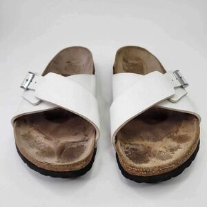 Betula Birkenstock White Criss Crossed Slide Sandal 2 Strap Womens Size 7 N