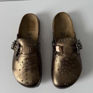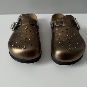 Betula Shoes Womens Size 8 Bronze Metallic Leather Clogs Studded Slip-On Buckle
