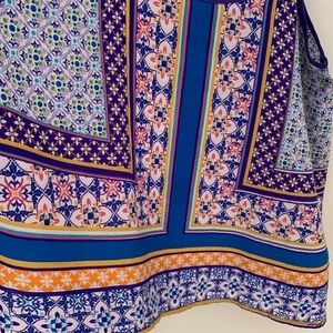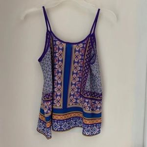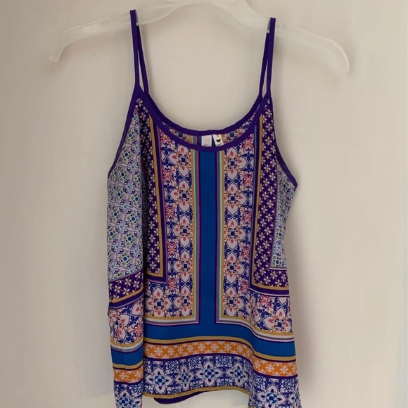 Bright top, with spaghetti straps. Trapeze style. Polyester.