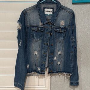 Add a touch of edge to your wardrobe with the Between Us Blue Distressed Jean Jacket. This stylish piece features a classic blue hue with a trendy distressed finish, perfect for casual outings.