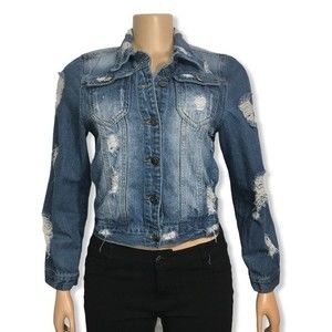 Between Us Denim Trucker Jacket factory Ripped and Distressed size S
