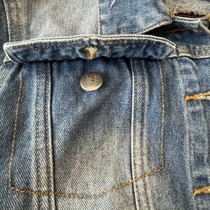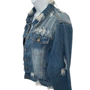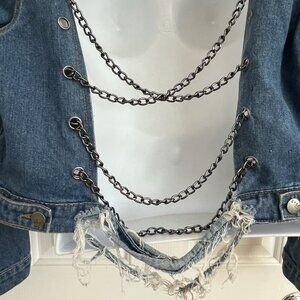 Between Us Womens L Destroyed Denim Trucker Jacket Chain Back Detail Grunge Punk