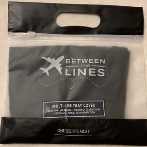 Between The Lines multi-use seat cover and airline tray cover. (Two piece set). This seat cover is ideal for our travel, theaters, classrooms, stadiums and public transportation. This bundle also includes the airline tray cover. NWT & Smoke free/Pet free home free/per free home. See photos for complete description/details.