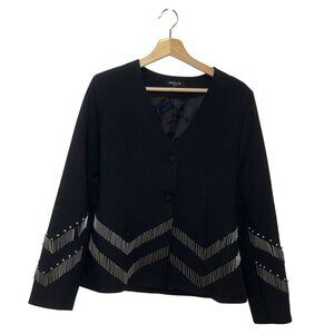 Beulah Black Blazer Jacket With Embroidered Metallic Stripes Size L