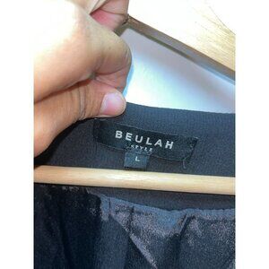 This Beulah blazer exudes sophistication with its sleek black design and elegant metallic embroidered stripes. A versatile piece suitable for professional settings, it offers style and comfort. The large size ensures a flattering fit while maintaining ease of movement, making it a reliable choice for a polished appearance.