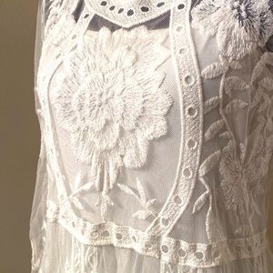 Cottagecore at its finest! This Beulah dress has had all the tags removed so they didn’t spoil the gorgeous embroidery and sheerness! Beautiful scalloped edges on the sleeves and hem. Please see pics for pit to pit measurements.