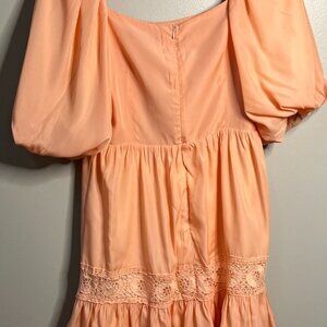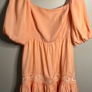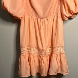 Mini Dress In Pink With Off-The-Shoulder Design, Puff Sleeves, Embroidered Accents, And Self-Tie Waist Sash