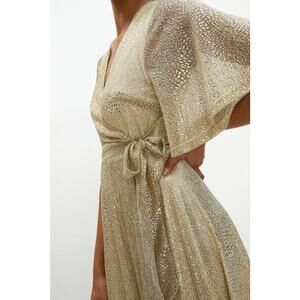 Beulah Style Gold Metallic Angel Wrap Dress Small