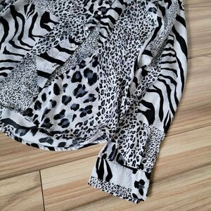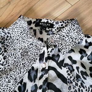 Beulah Style Leopard Zebra Animal Print Button Down Shirt in Black & White