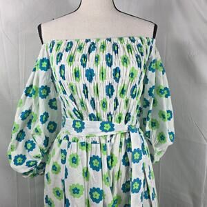 Beulah Style Maxi Dress Women One Size White Blue Green Floral Off Shoulder Boho